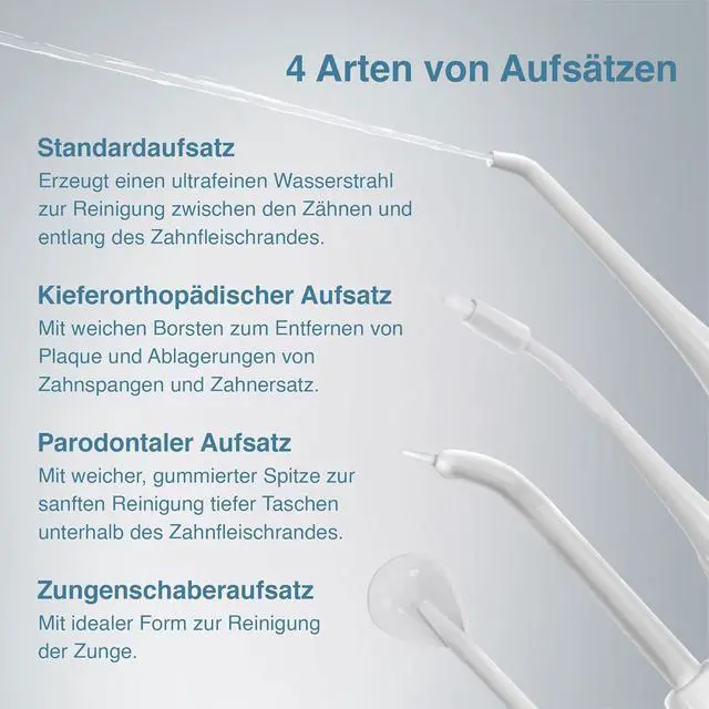 Ideal for Braces & Hard-to-Reach Areas Aqua Flossers 360-degree rotating tips allow for a deep and thorough clean, making it a great choice for those with braces, dental work, or hard-to-reach areas. The included orthodontic and periodontal tips offer specialized care for a complete clean.
