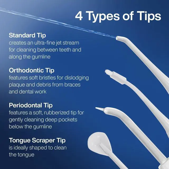 Ideal for Braces & Hard-to-Reach Areas Aqua Flossers 360-degree rotating tips allow for a deep and thorough clean, making it a great choice for those with braces, dental work, or hard-to-reach areas. The included orthodontic and periodontal tips offer specialized care for a complete clean.