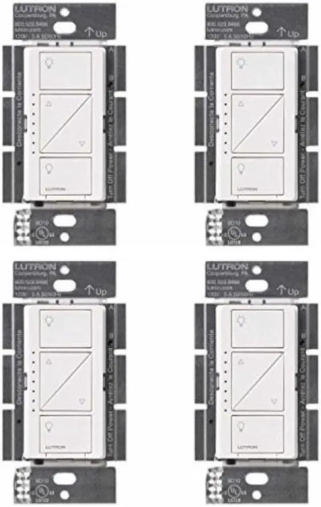 Use this Lutron Caseta Wireless Smart Lighting Dimmer Switch and you will never look at a light switch the same again. Favored by homeowners everywhere, this Dimmer is the one you want in your home. Decked out with the most amazing conveniences available, and able to connect with almost all the smart lighting brands, you will be wondering where the Dimmer Switch was your whole life. Features The Dimmer Switch replaces an existing switch and installs in 3 easy steps, taking about 15 minutes from start to finish and is ideal for older homes as they dont require a neutral wire. The Caseta Dimmer Switch was tested and recommended for use with over 1,000 bulbs and can control up to 17 bulbs (based on 8.5W LED bulb, 60 W incandescent equivalent) and works with up to 150 W dimmable LED/CFL OR 600 W incandescent/halogen bulbs. The Dimmer Switch comes in a modern and classy white, a color that is sure to match all your needs. Connections For additional comfort, the Dimmer Switch can be controlled in different ways. The Pico remote can be used for multi-location light controlling from anywhere around your home. The Dimming Switch can also be used with Alexa, which controls the dimming through voice commands. There is also a free app that can be accessed through a smart phone for easy dimming settings. The Dimming Switch can connect with other smart home brands too. (Smart Bridge is required for all connections, and the Pico remote, Alexa and the Smart Bridge are all sold separately). Note: Coordinating wallplate for the Lutron Caseta Wireless Smart Lighting Dimmer Switch is sold separately. Bundle Includes: Lutron Caseta Wireless Smart Lighting Dimmer Switch (White, 4-Pack)