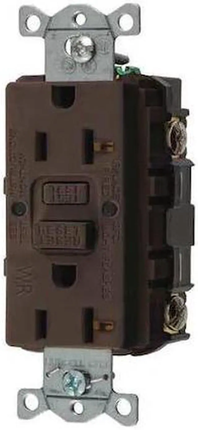 Self-Testing Hubbell GFCI Receptacle device is made to be used in commercial environments, to help protect against shock hazards from electrical appliances and tools, especially in wet and damp locations. It meets new UL requirements by automatically monitoring ground fault circuit interrupting functionality every 3 hours or less. GFCI Rceptcle, Commer., Brwn, 20A, 1 HP