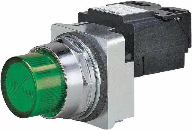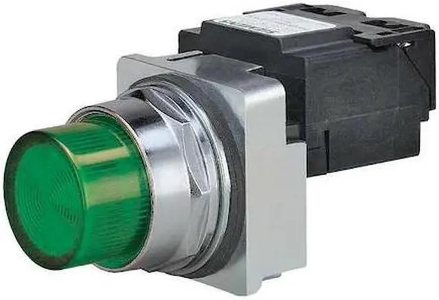 Pilot Light Complete, Voltage 120V AC, Color Green, Lamp Type LED, Shape Round, Terminal Connection Pressure Plate, Lens Material Plastic, 30 mm, Lamp Module Type Full Voltage, Basic Material Metal, Lens Type Concentric Rings, Lamp Voltage 120V AC, Replacement Lamps N/A, Body Material Chrome Plated Zinc Die Cast, NEMA Rating 1, 12, 13, 3, 3R, 4, 4X, IP Rating 10, Includes Lamp, Lamp Module, Operator Head, Standards CSA, UL