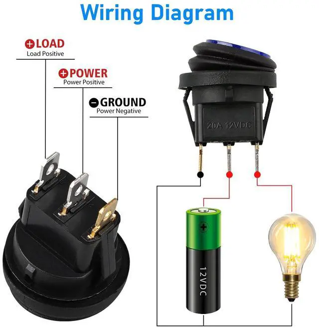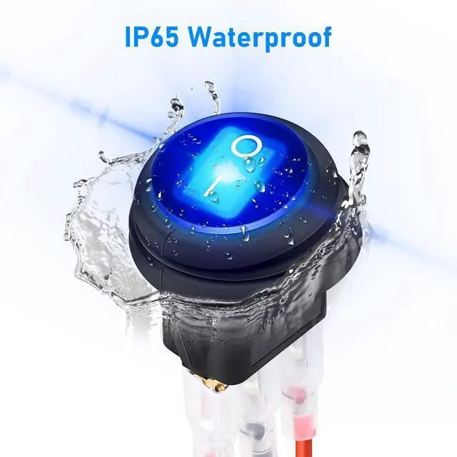 Blue LED lighted Switch: This Round Rocker Switch with 12VDC Blue LED, The Switch LED will light up to indicate the operating status of the device when the switch is turned ON.