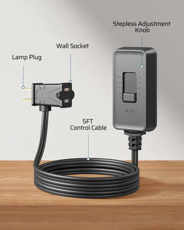 No Wiring Necessary Quick to install with tool-free set-up; no need to install an in-wall dimming device; simply plug in and use; compliant material (safety, health and environmental protection)