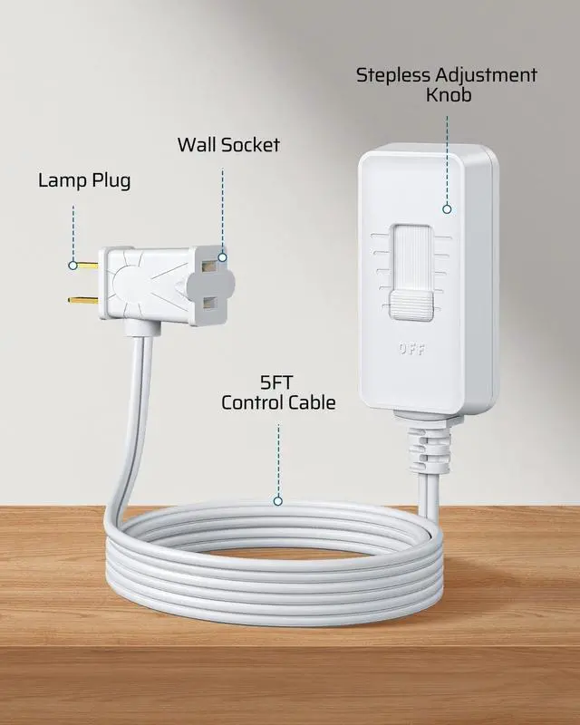 No Wiring Necessary - Quick to install with tool-free set-up; no need to install an in-wall dimming device; simply plug in and use; compliant material (safety, health and environmental protection)