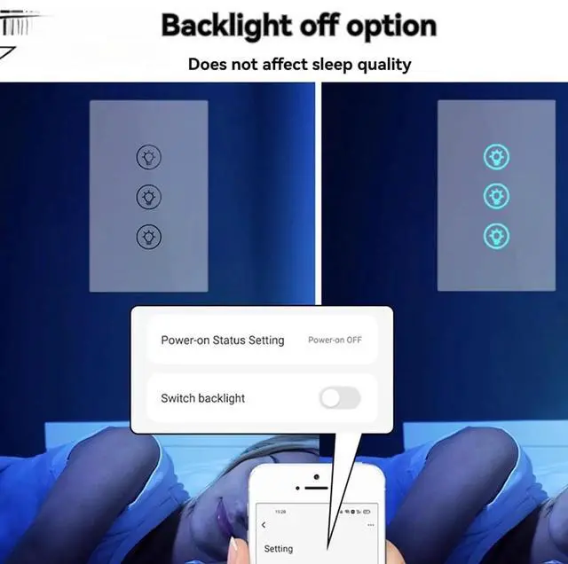 1. Long press the switch to dim, single press each button to turn on/off,Control your two or three lights independently without any interference.