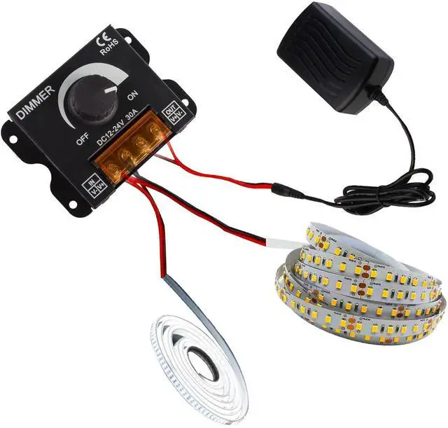 LED Light Strip Dimmer,DC 12V-24V 30A LED Light Strip Dimmer PWM Dimming Controller with ON/Off Switch Knob and Aluminum Case for 5050 3528 LED Strip Lights Adjust Brightness