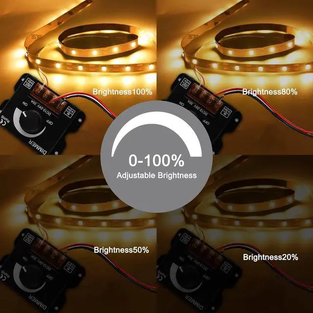 Screw-in input and output terminals are easy to install. Mainly used to adjust a single color LED light/lamp strip, not for multi-color mixed LED lighting. Please turn off the power before installation to prevent electric shock.