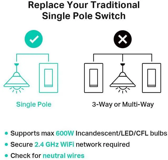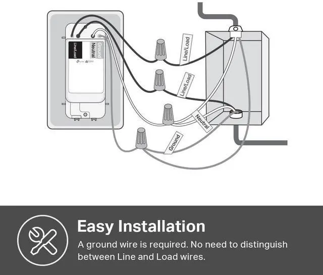• App-Guided InstallNeutral wire is required, standard wall plate size. No need to understand complex switch wiring or master vs auxiliary switch configurations; The Kasa app guides you through easy step by step installation. Need 2.4GHz Wi-Fi connection.
