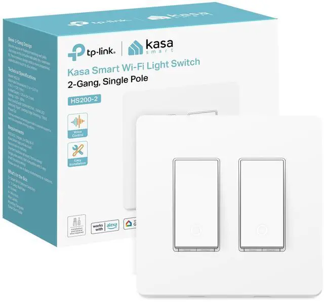Kasa Smart Switch 2-Gang HS200-2, Single Pole, Neutral Wire Required, 2.4GH z Wi-Fi Light Switch Compatible with Alexa and Google Home, UL Certified, No Hub Required, White
