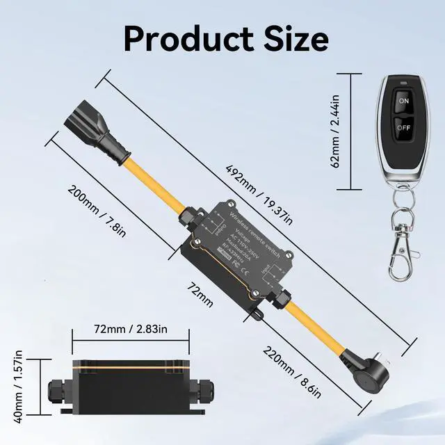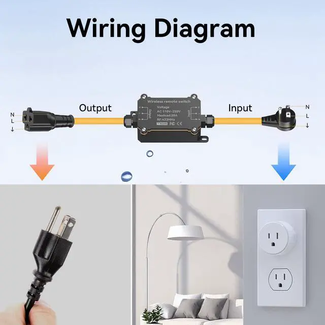 • Easy to Install:This AC110V remote control switch is designed with portability at its core,featuring a clearly visible and durable yellow power cord.Simply plug the receiver into the power source and the device,no wiring