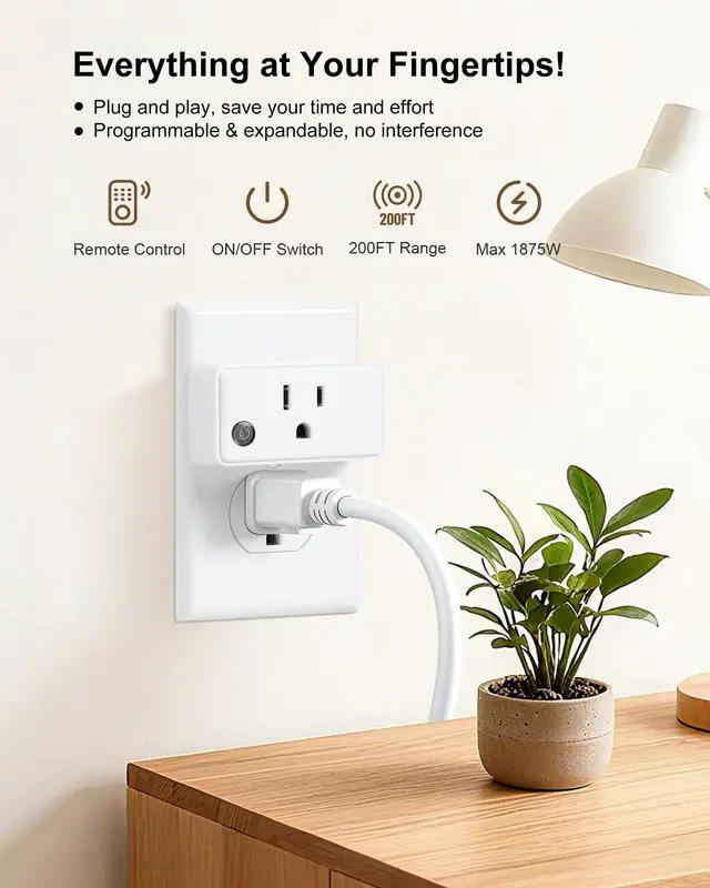 The remote control outlet offers ease of use and flexibility in managing your devices. Great for devices/plugs that are difficult to reach.