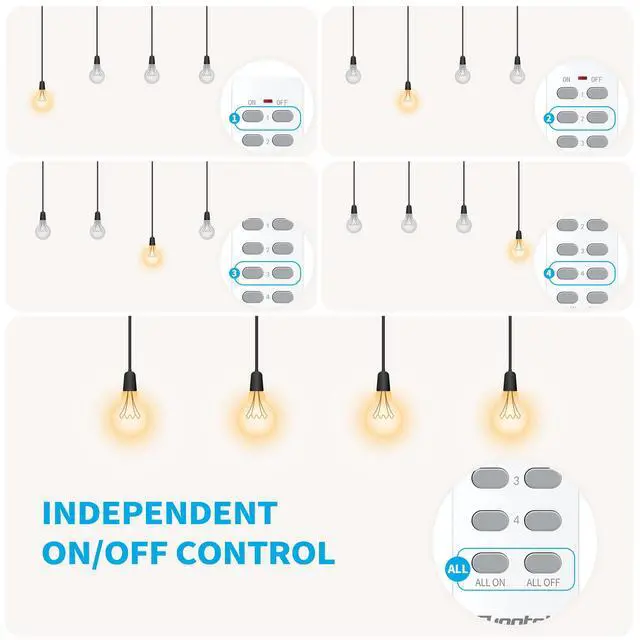 Utilize a single remote to independently control each socket and manage multiple outlets according to your needs.