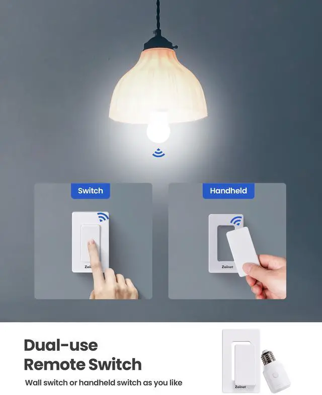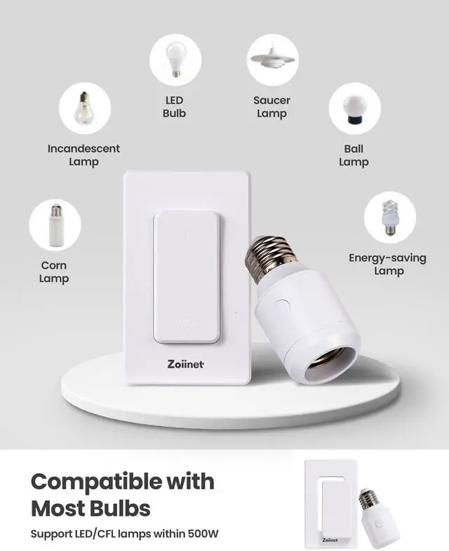 Zoiinet wireless switches can work with Zoiinet‘s receiver, outlet and light socket.
