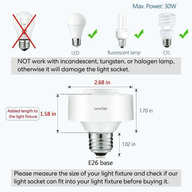 Our light sockets are specifically designed for LED lighting and are compatible with LED bulbs, compact fluorescent bulbs (CFLs), fluorescent bulbs, and corn bulbs. To ensure the safety of your lighting fixtures, we advise against using any incandescent, tungsten, or halogen lamps, as this may damage the light socket. If you have any questions about our products, please confirm with us.