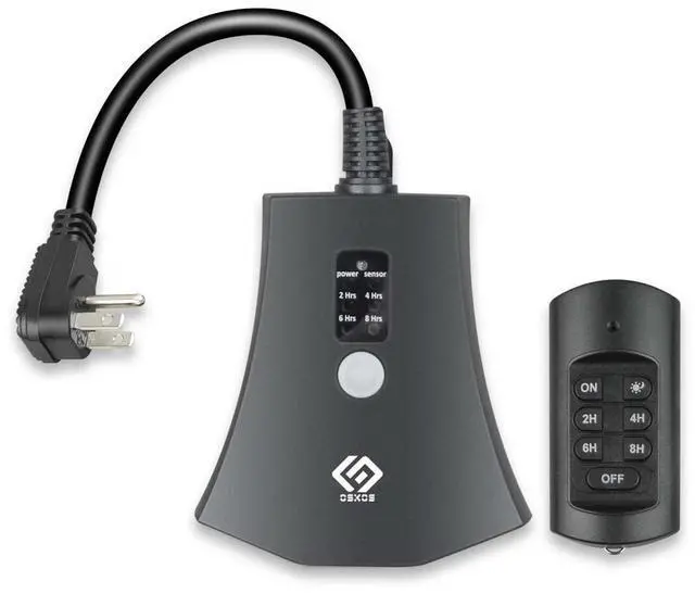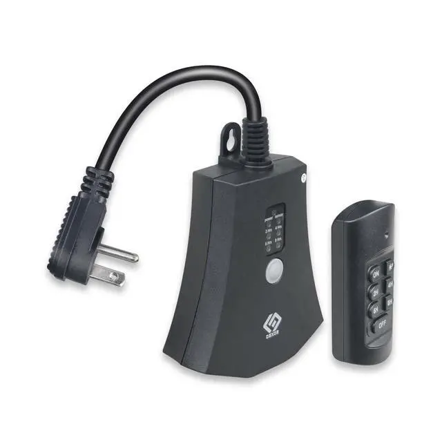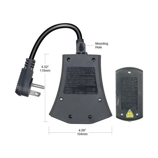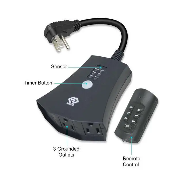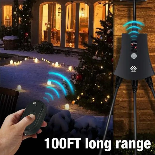 [Easy to Use] This remote outlet comes pre-paired with the remote control,simply press the button to remotely control hard-to-reach sockets according to the schedule you set on, off, dusk to dawn, on at dusk and off after 2,4,6 or 8 hours; repeat daily [100 Feet RF Range] Strong RF signal works through walls and doors without any interference; up to 100FT(30meters) range in open areas [Rugged and Weatherproof] The housing is constructed from materials designed to resist damage from sunlight, rain, and dust [Versatile Usage] Compatible with various appliances, supporting up to 15A at 125V, suitable for a 1000W tungsten load and a 1/2 HP load [Safe & Reliable] UL certified