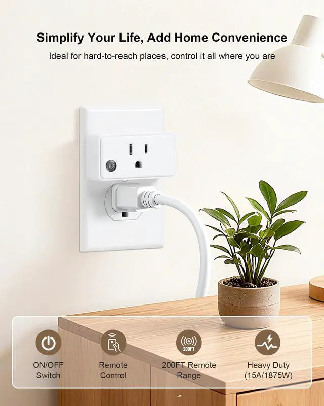 The remote control outlet offers ease of use and flexibility in managing your devices. Great for devices/plugs that are difficult to reach.
