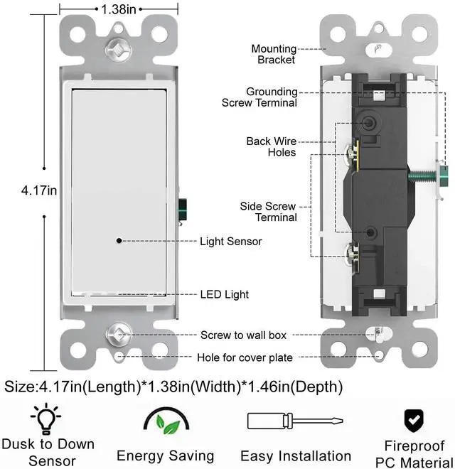 With its ambient light sensor,the electrical switch gradually turns on as it gets dark outside and load is OFF, turns off as the environment brightens.Your home will be safer and enhanced with the addition of the light switch.