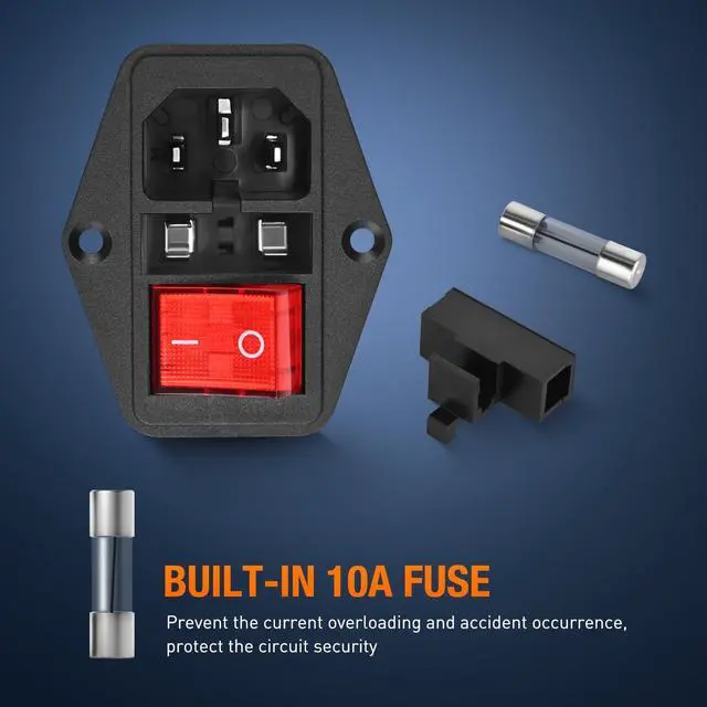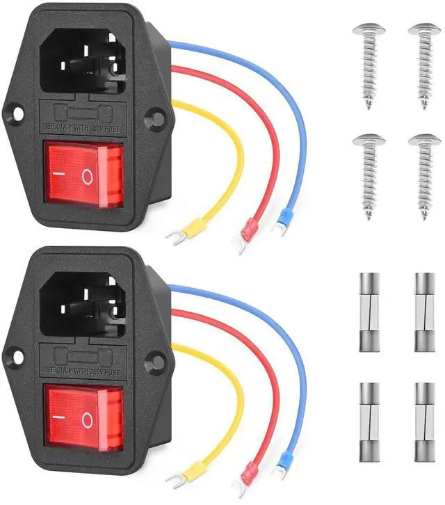- Switch Power Socket: Voltage: 125/250V AC; 3 Pin power socket inlet module with on-off button