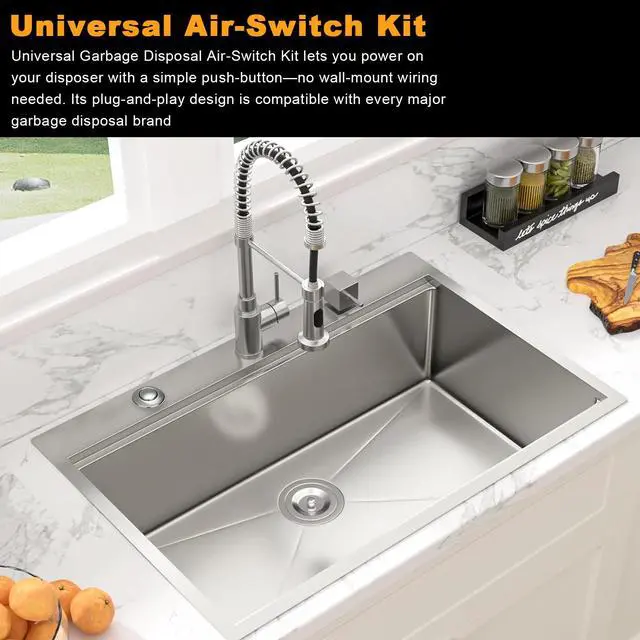 Effortless Upgrade for Hard-to-Reach Switches Instantly solve the problem of a hard-to-reach or inconvenient wall switch with a single, elegant push-button. This universal air switch kit offers 100% compatibility with all major brands like InSinkErator, Waste King, Moen, and any standard plug-in disposal. Enjoy the ultimate convenience without any complex rewiringperfect for kitchen islands and sinks where the existing switch is too far away.