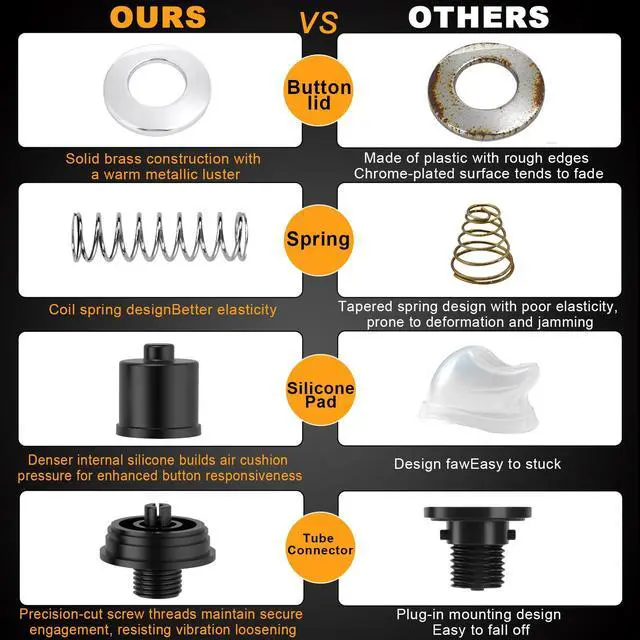 One Universal Size Fits All Countertops No Need to Choose Our Long 3.5" Button is the Ultimate Solution! Expertly engineered to fit virtually all countertops, it installs seamlessly on standard stainless steel sink tops as well as thick materials like granite, marble, and quartz. The premium, brass anti-fingerprint finish resists stains and maintains a like-new look for years.