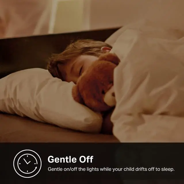 Use 'Gentle Off' to fade off the lights in your child's bedroom as they drift off to sleep or allow yourself time to exit a room without bumping into something in the dark.