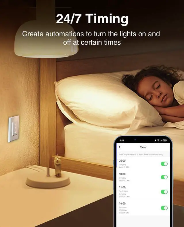 Set your daily schedules on the app to light up your home anytime, anywhere.