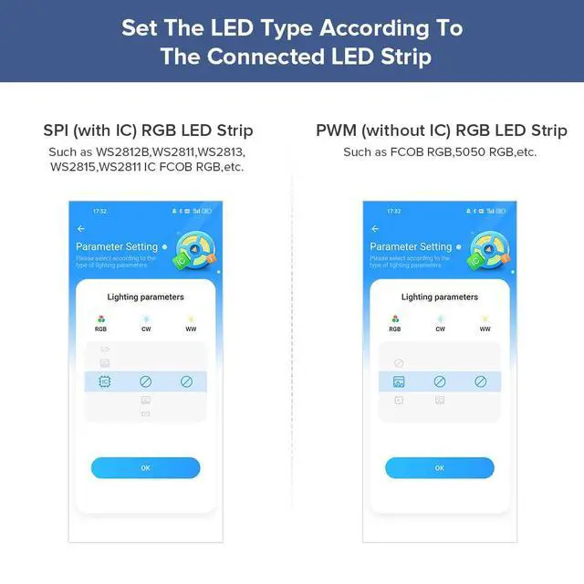 | Compatible LED Strip Lights | SPI RGB/RGBW LED strip or PWM 3CH RGB/4CH RGBW LED strip |