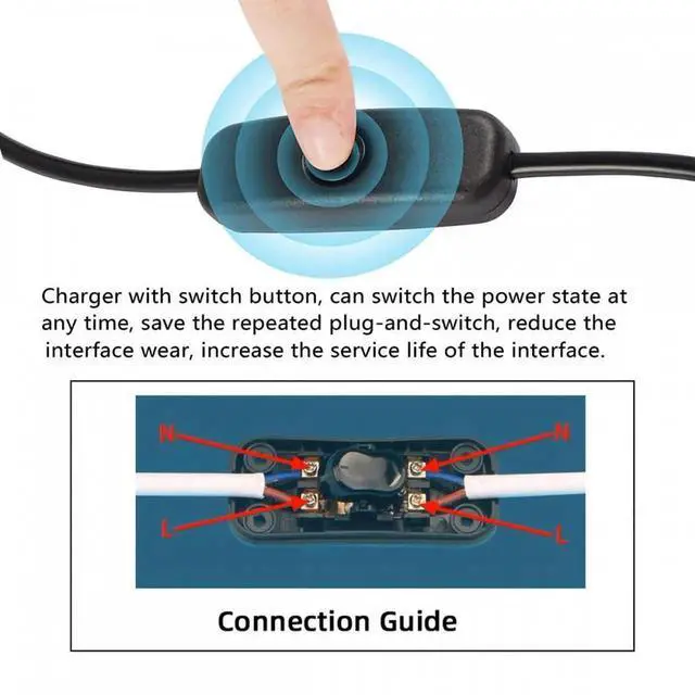 Two pole connection, easy to install. Slide the button to on/off,only the on-and-off function has no dimming function.