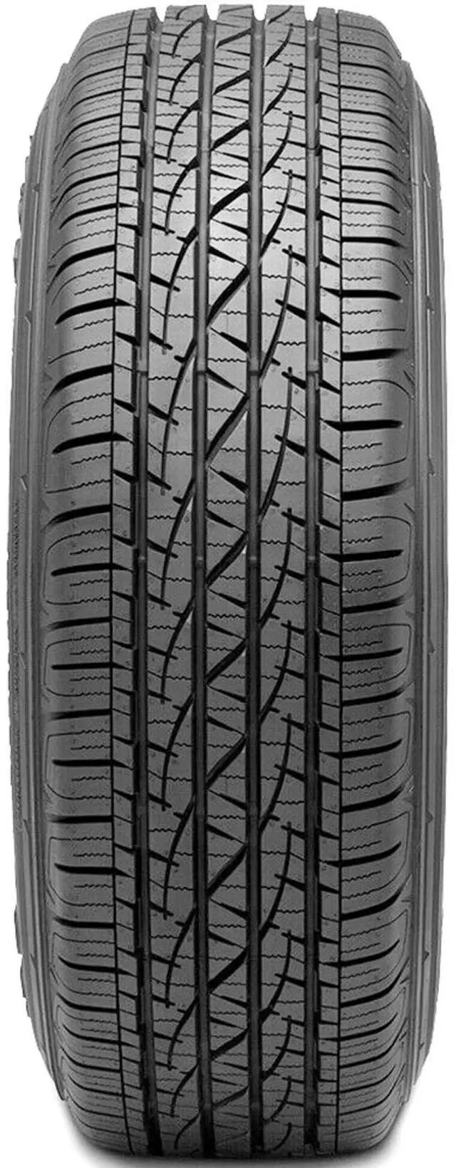 The tread pattern promotes all weather traction and hydroplaning resistance. The five-degree design decreases the road noise heard in the vehicle's cabin. The maintained road contact prevents irregular tread wear, extending the tread life. The internal structure improves the tire's uniformity by keeping its optimal shape under the driving pressure. The Destination LE2's constant road contact enhances the steering and the driving stability significantly.