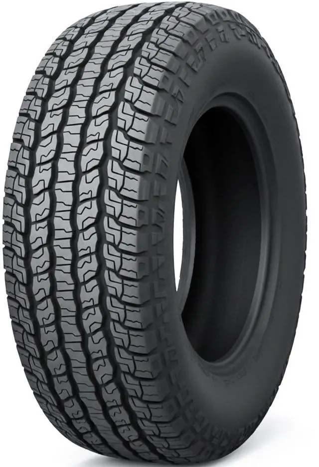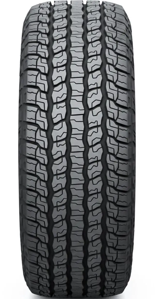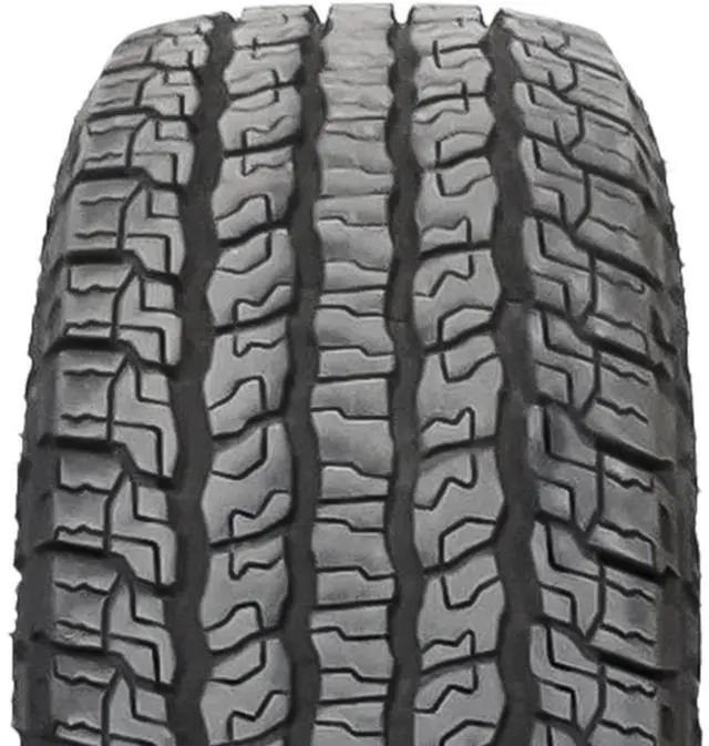 The Goodyear Wrangler Territory A/T (OE) is an all terrain, all season tire manufactured for SUVs and light trucks. This is an OE as it is the original equipment of select vehicles. The aggressive tread design upgrades the versatile terrain traction, boosting the soft, loose, and uneven terrain traction. The tread avoids stone retention and keeps the footprint clean at all times.