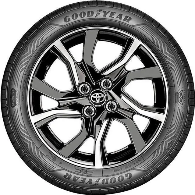 The Goodyear Assurance DuraPlus 2 is a touring, summer tire made for passenger vehicles. The symmetrical tread design and summer compound improve dry and wet weather traction. The four center grooves avoid hydroplaning by dispersing water away from the tire.