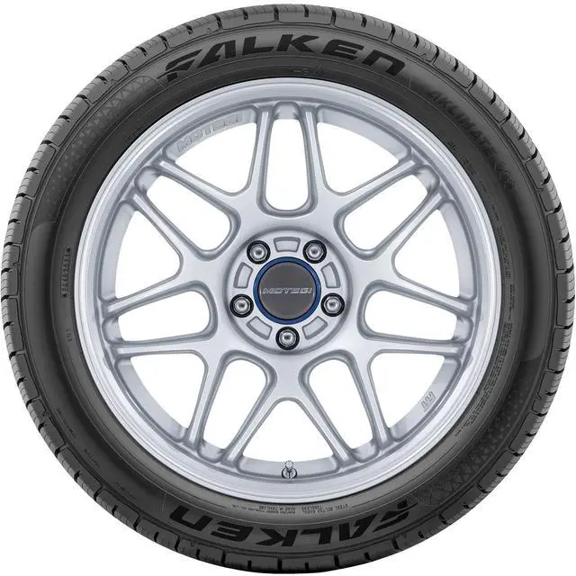 The Falken Aklimate is a touring, all weather tire made for passenger vehicles and SUVs. This model has some high performance sizes available. Falken offers a 65,000 mile treadwear warranty with this model. It is winter weather certified with the 3PMS symbol. The asymmetric tread design and the all weather compound offer excellent year-round traction and hydroplaning resistance.