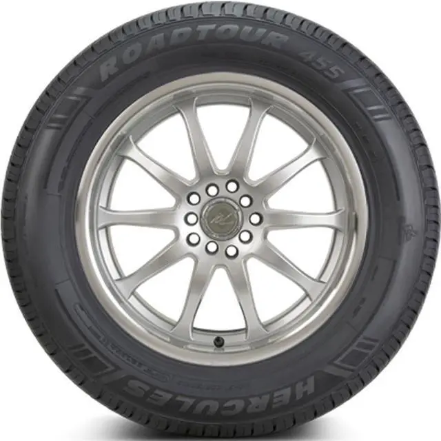 The Hercules RoadTour 455 is a touring, all season tire manufactured for passenger vehicles and SUVs. Hercules offers a 45,000 mile treadwear warranty. Great all season traction is guaranteed with the ribbed footprint and stronger compound. The grooves prevent hydroplaning in wet conditions.