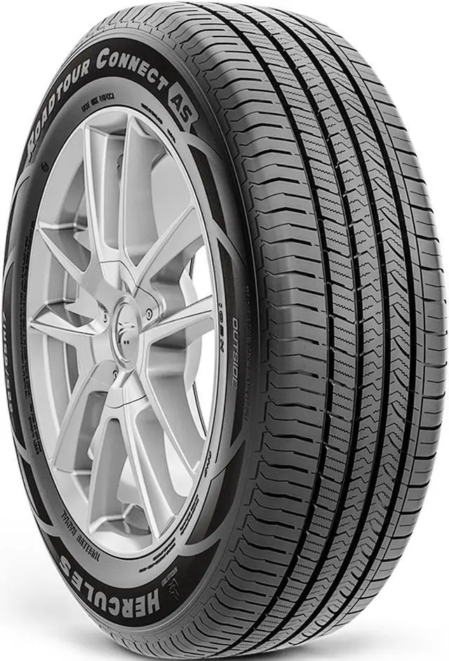 The Hercules RoadTour Connect AS is a touring, all season tire made for passenger vehicles and SUVs. Hercules offers a 55,000 mile treadwear warranty with this model. The asymmetric tread pattern and the all season compound enhance the tire's grip in dry, wet, and winter weather.