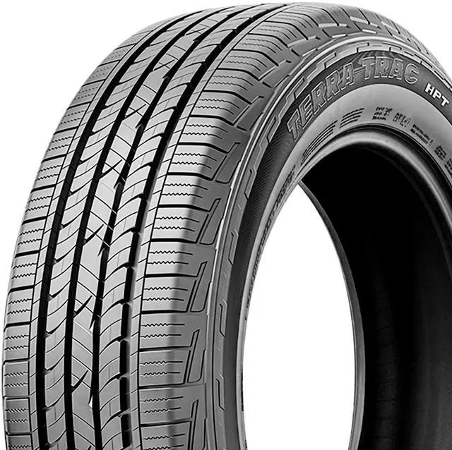 The tread design's consistent surface contact upgrades steering responsiveness and driving stability. Stronger traction allows the tire to lower its rolling resistance during the drive, lessening the vehicle's fuel consumption levels. Slow and even wear significantly improve usability with the tread design and the durable compound. The Terra Trac HPT lessens road noise levels heard by the passengers.