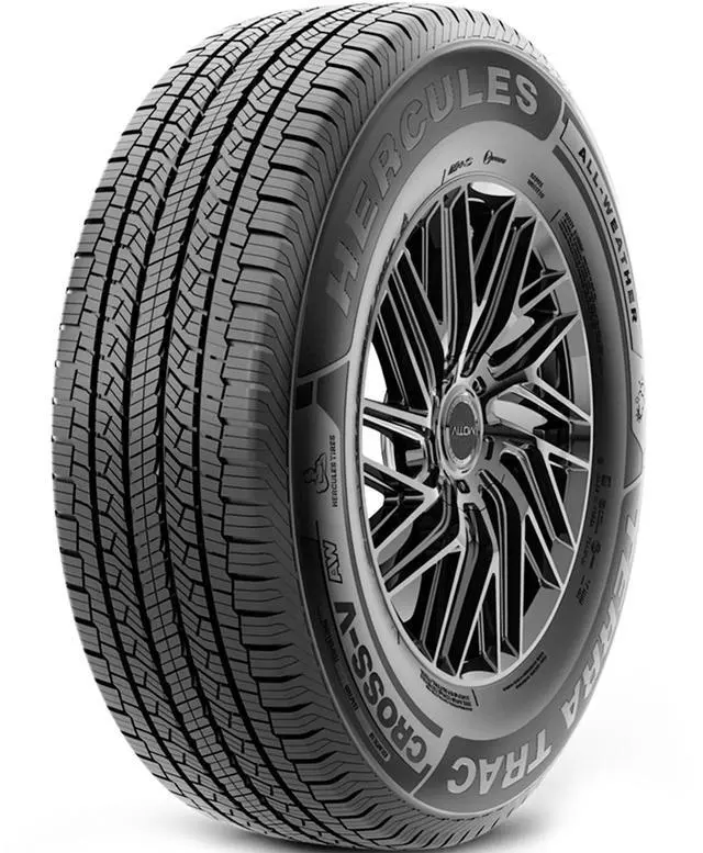 The Hercules Terra Trac Cross-V AW is a highway terrain, all weather tire made for light trucks and SUVs. This model also has some touring passenger sizes available. Hercules offers a 60-65,000 mile treadwear warranty with specific sizes of this model. It is winter weather certified with the 3PMS symbol. The symmetric tread pattern and the rubber compound increase the tire's steering responsiveness and driving stability.