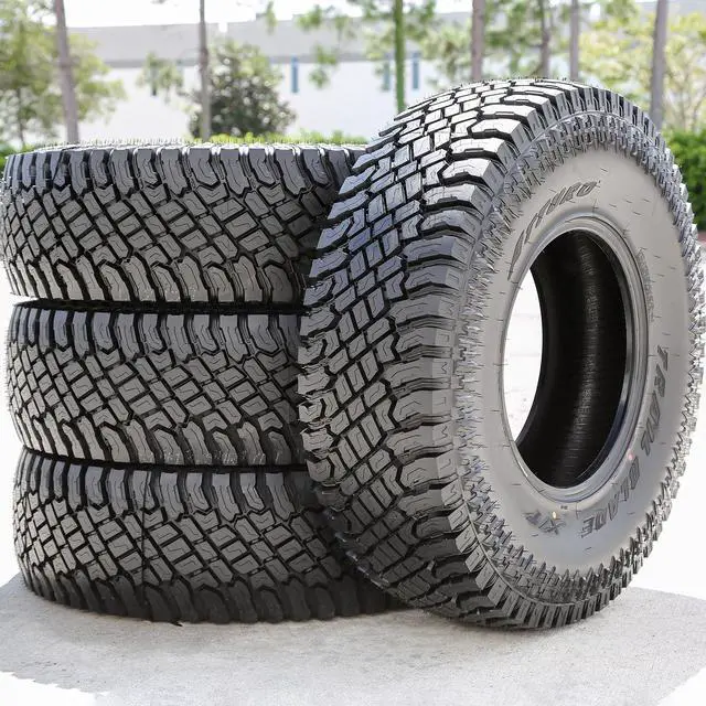 The hybrid tread design improves the soft, loose and uneven terrain traction, while also ensuring a safer on-road performance. The tread elements maintain a clean footprint by cleaning out mud, snow and rocks from the footprint. The tread design increases its on and off-road controllability. The sidewall design prevents punctures and damages to the rim. The Trail Blade X/T's light truck sizes offer a reinforced structure.