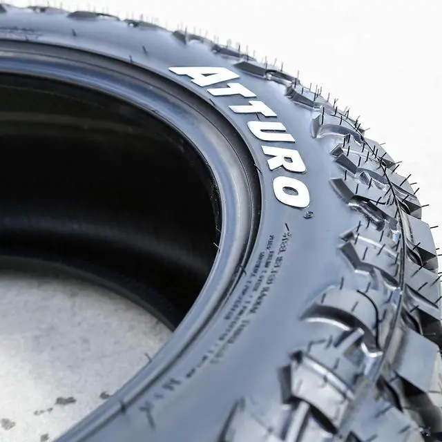 The Atturo Trail Blade M/T is a mud terrain all season tire manufactured for light trucks and SUVs. The model offers great all weather traction and a constantly clean footprint thanks to its self-cleaning nature.