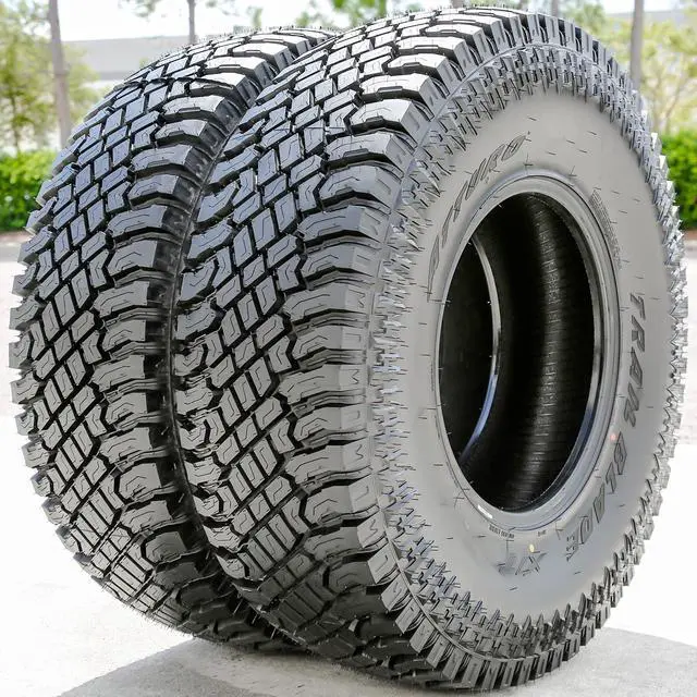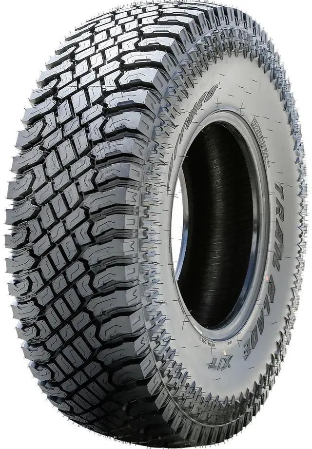 The hybrid tread design improves the soft, loose and uneven terrain traction, while also ensuring a safer on-road performance. The tread elements maintain a clean footprint by cleaning out mud, snow and rocks from the footprint. The tread design increases its on and off-road controllability. The sidewall design prevents punctures and damages to the rim. The Trail Blade X/T's light truck sizes offer a reinforced structure.
