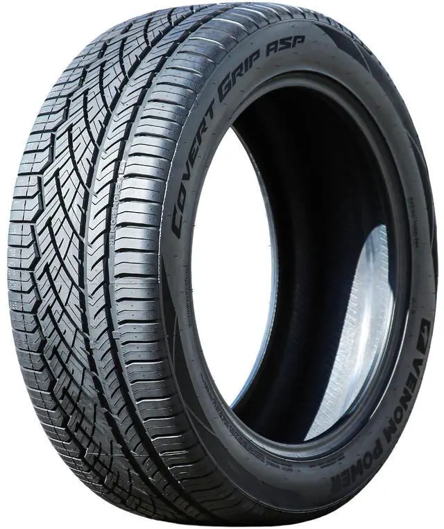 The Venom Power Covert Grip ASP is a performance and high performance, all season tire made for passenger vehicles and SUVs. This model has some highway terrain, trailer sizes available as well. Venom Power offers a 50,000 mile treadwear and a Road Hazard warranty with this model. The asymmetric tread pattern keeps continuous road contact for better steering responsiveness and driving stability.