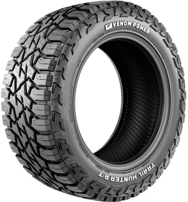 The Venom Power Trail Hunter R/T is a rugged terrain, all season tire manufactured for light trucks and SUVs. Venom Power offers a 50,000 mile treadwear warranty with specific sizes, some conditions apply. It also comes with Venom Power's Road Hazard warranty.