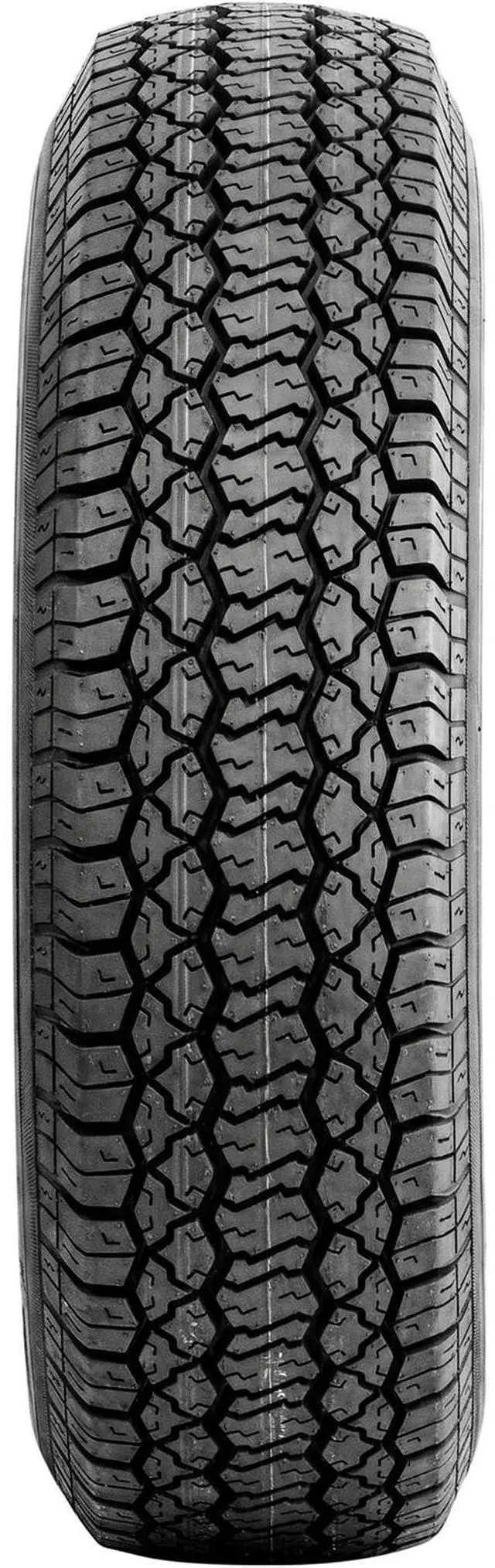 The zigzag grooves prevent hydroplaning by dispersing water and slush from the footprint. The stability of the footprint improves the surface contact, increasing the steering responsiveness and the driving stability. This ensures the towing vehicle's control over the vehicle. The TTT888 utilizes the bias ply structure enhances the load and driving durability, by preventing heat build-up and keeping the ideal tire shape.