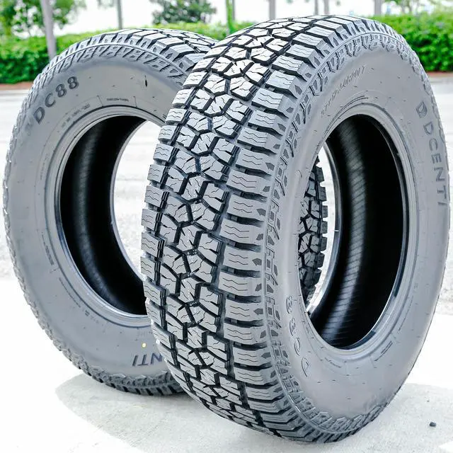 The Dcenti DC88 AT is an all terrain, all season tire made for light trucks and SUVs. The optimal tread pattern and the special silica compound boost the tire's performance on various terrain surfaces. At the same time, this tread manages to keep the footprint clean.