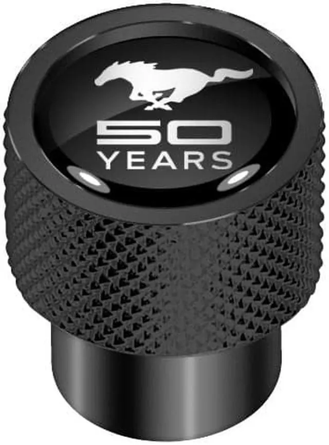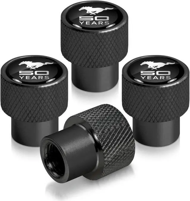 Ford Mustang 50 Years in Black on Black Aluminum Tire Valve Stem Caps