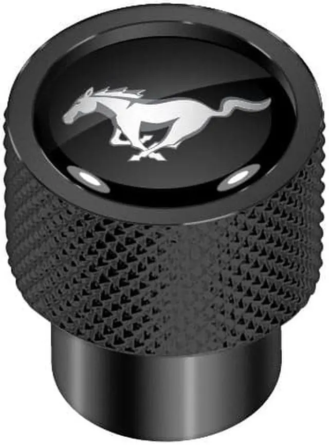 Ford Mustang in Black on Black Aluminum Tire Valve Stem Caps
