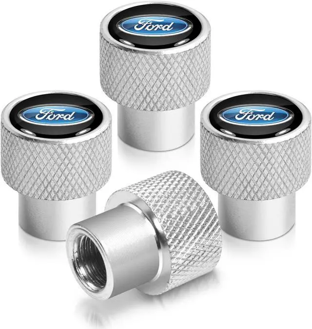 Ford Logo in Black on Silver Chrome Aluminum Tire Valve Stem Caps