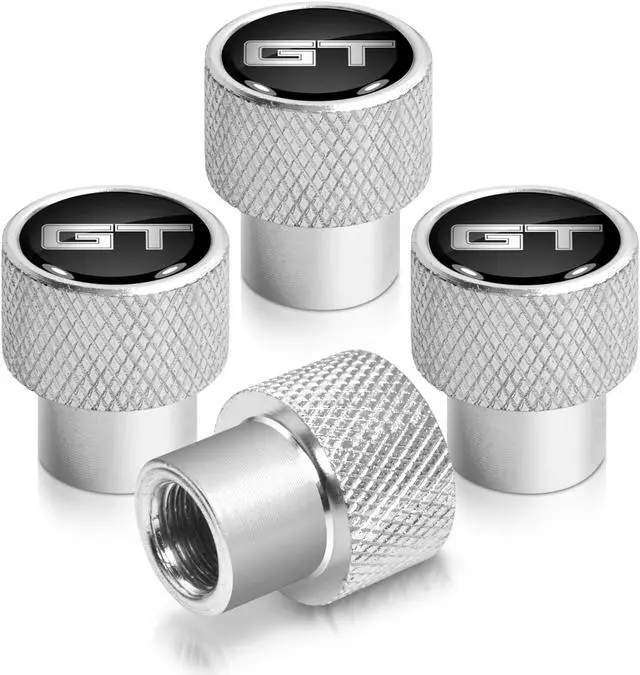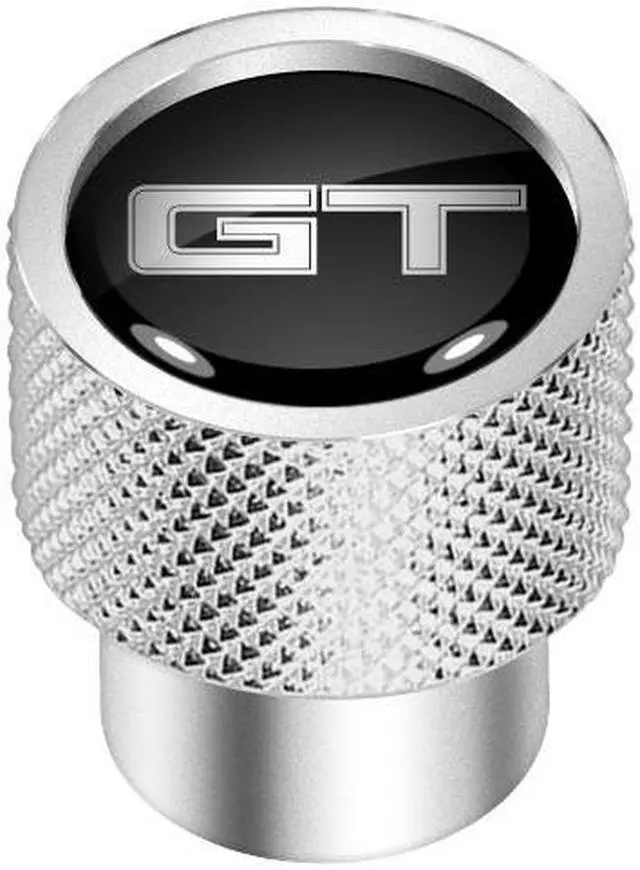 Ford Mustang GT in Black on Silver Chrome Aluminum Tire Valve Stem Caps