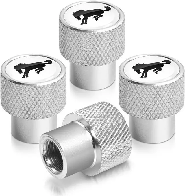 Ford Bronco in White on Silver Chrome Aluminum Tire Valve Stem Caps