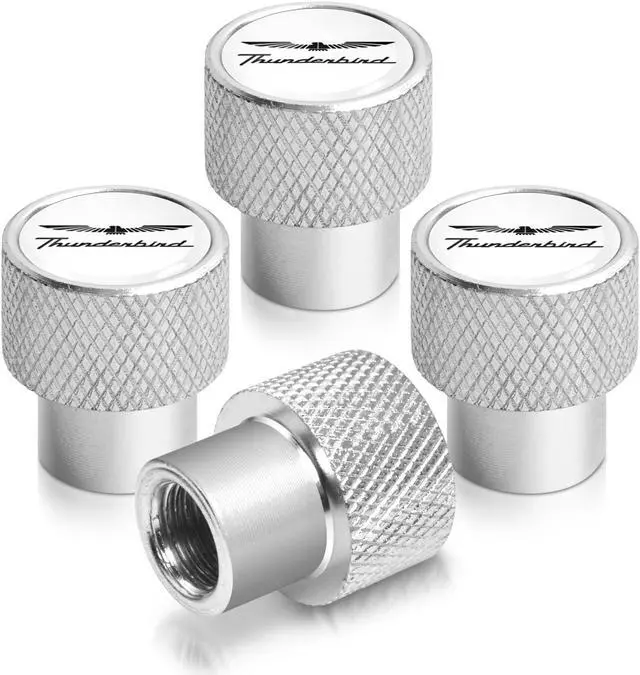 Ford Thunderbird in White on Silver Chrome Aluminum Tire Valve Stem Caps