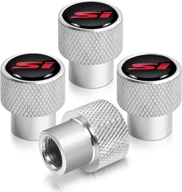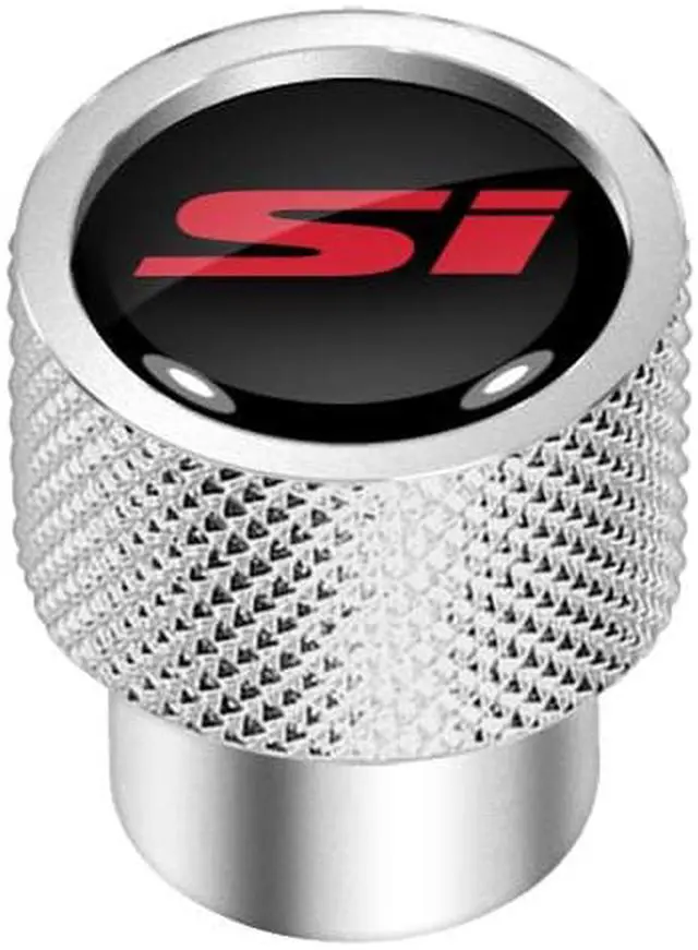 Honda Civic Si Red Logo in Black on Shining Silver Aluminum Tire Valve Stem Caps